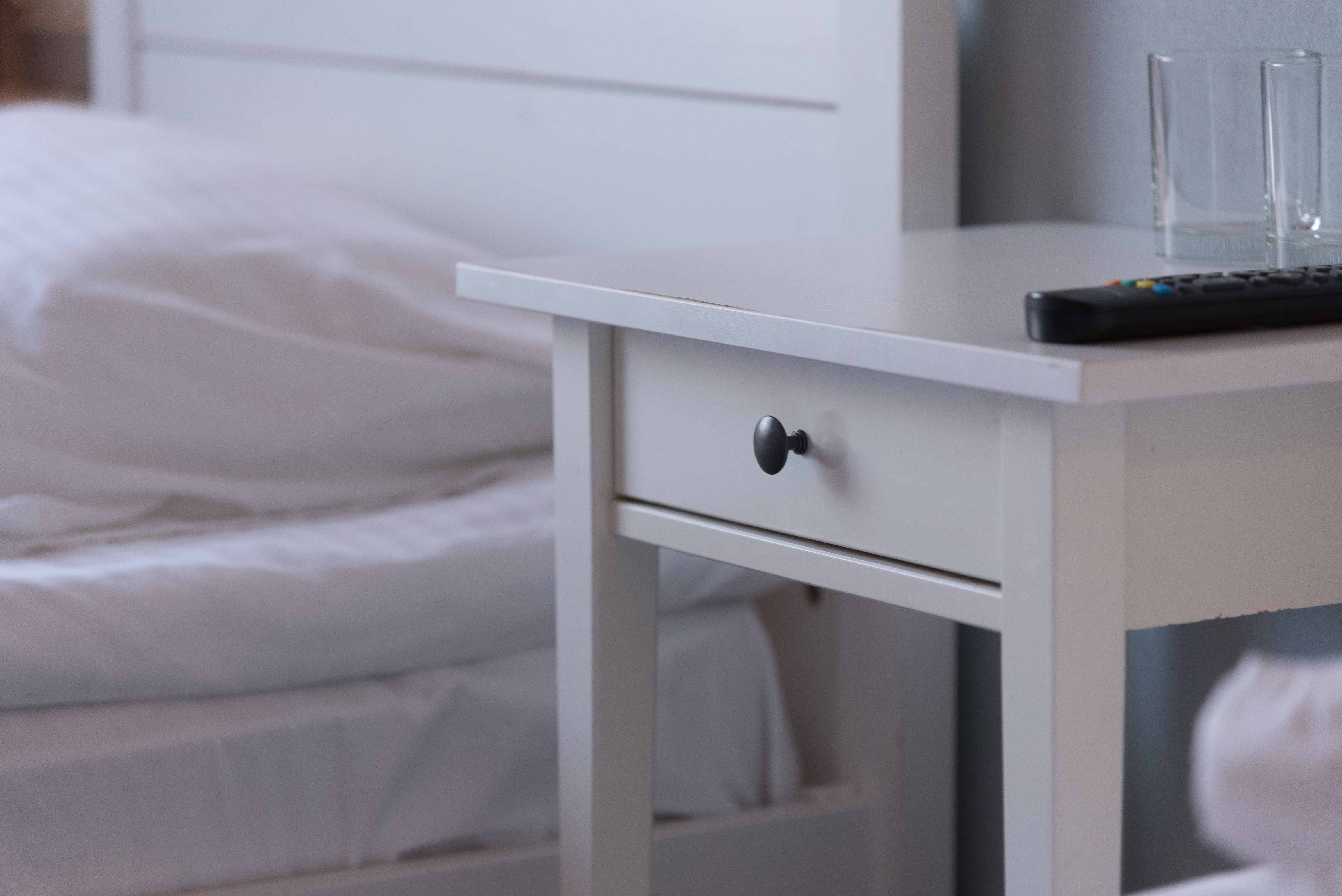 Две односпальные кровати, шкаф-купе для одежды, прикроватные тумбочки, журнальный столик и стул;